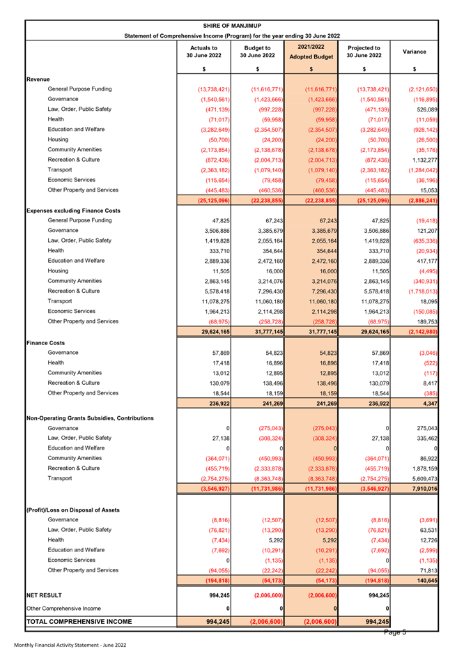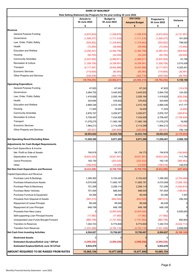 9.3.2 - Monthly Financial Activity Statement - June 2022