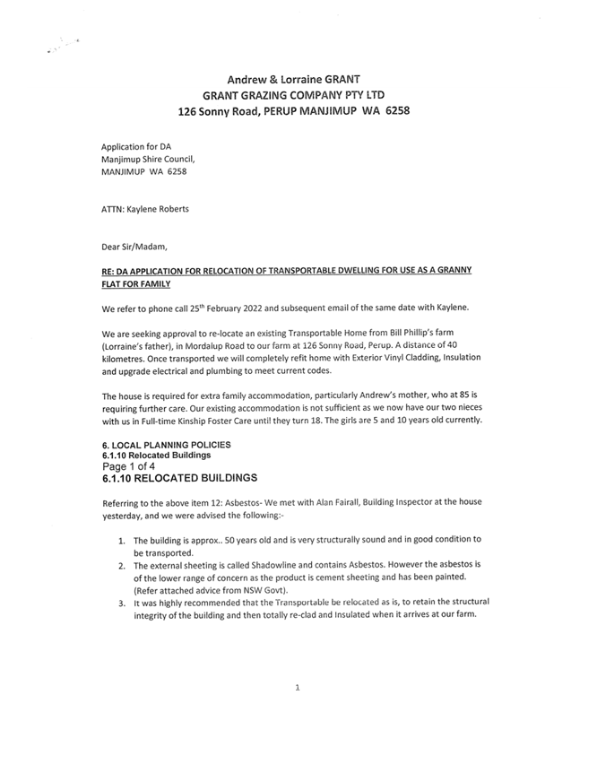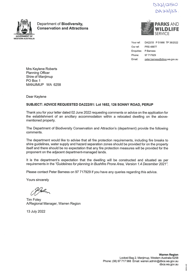 9.5.1 - Proposed Ancillary Accommodation at Lot 1652 (126) Sonny Road, Perup