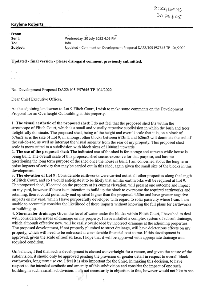 9.5.2 - Proposed Overheight Outbuilding on a Vacant Lot at Lot 9 (16) Flitch Court, Manjimup