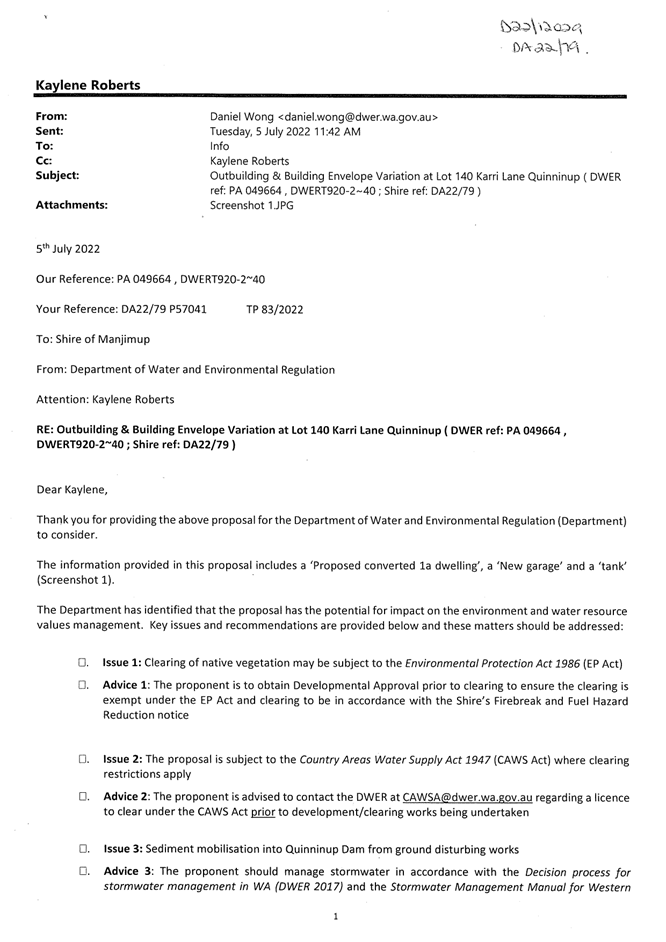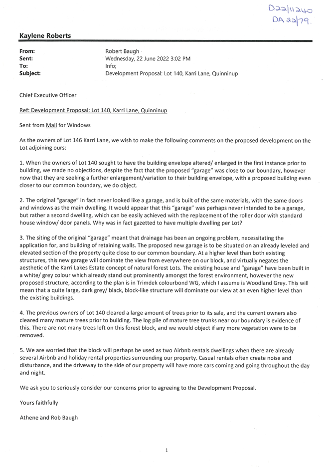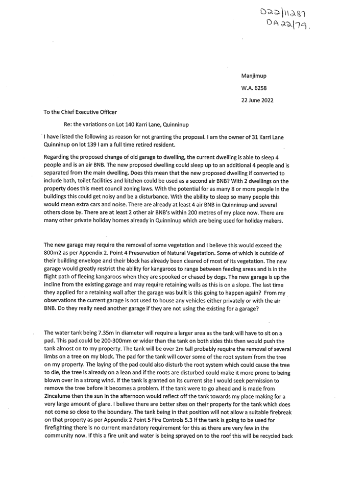 9.5.5 - Proposed Water Tank, Garage and Revised Building Envelope at Lot 140(37) Karri Lane, Quinninup