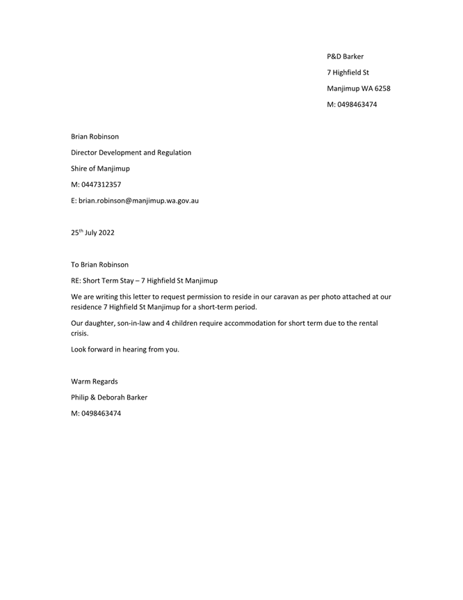 9.5.8 - Request to Occupy Caravan for Up to Three Months - No 7 (Lot 14) Highfield Street, Manjimup