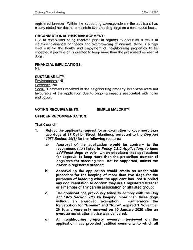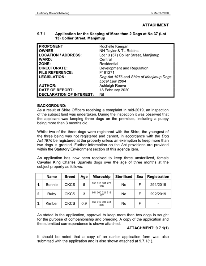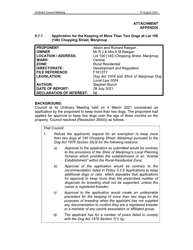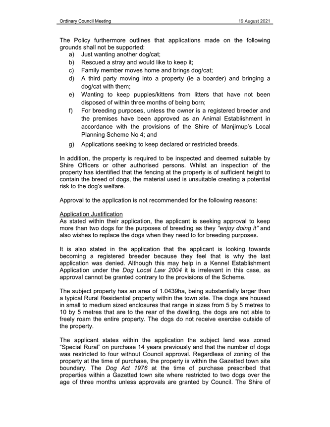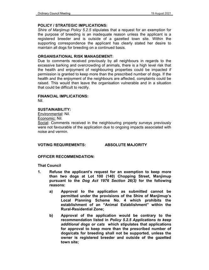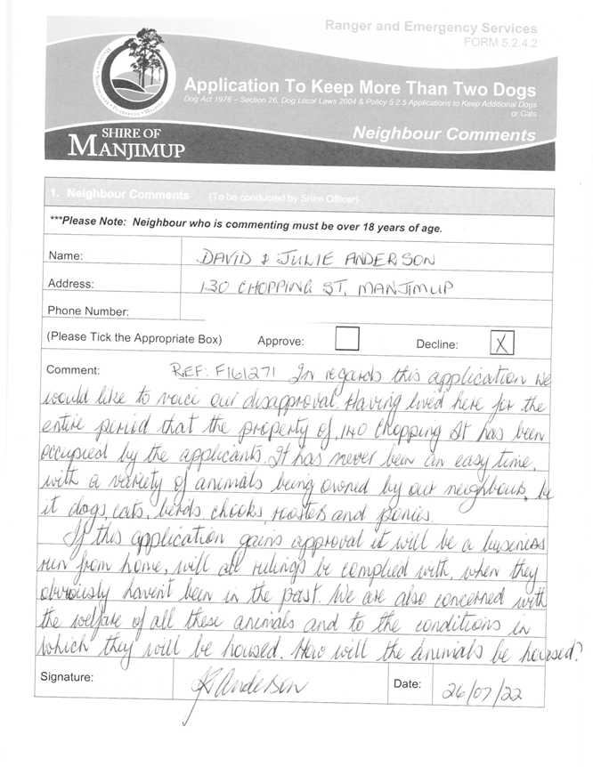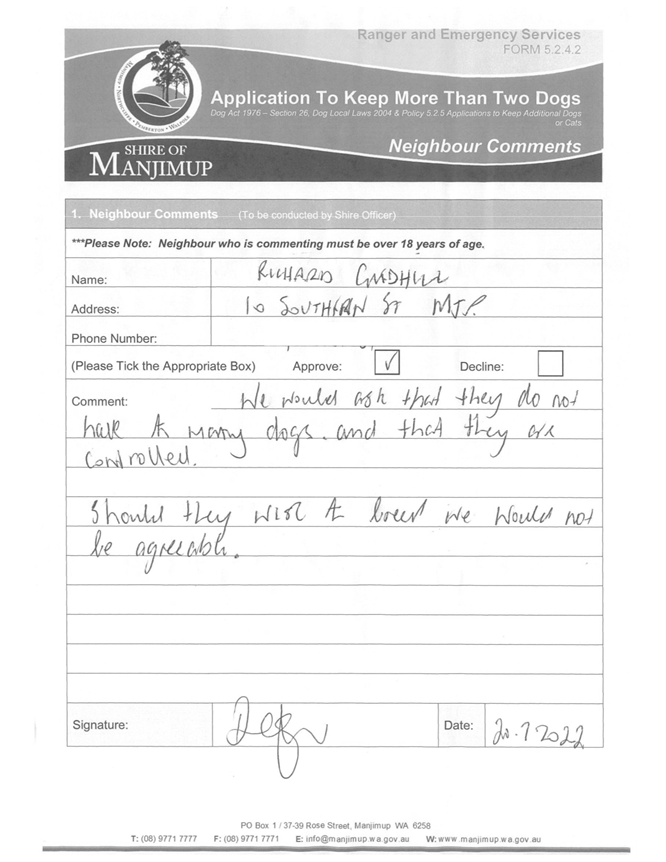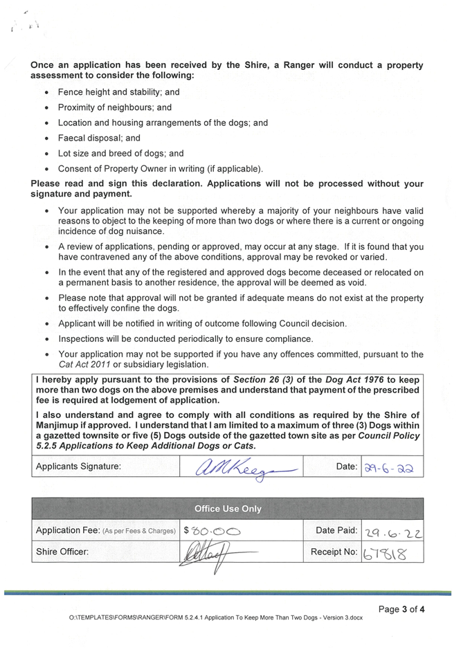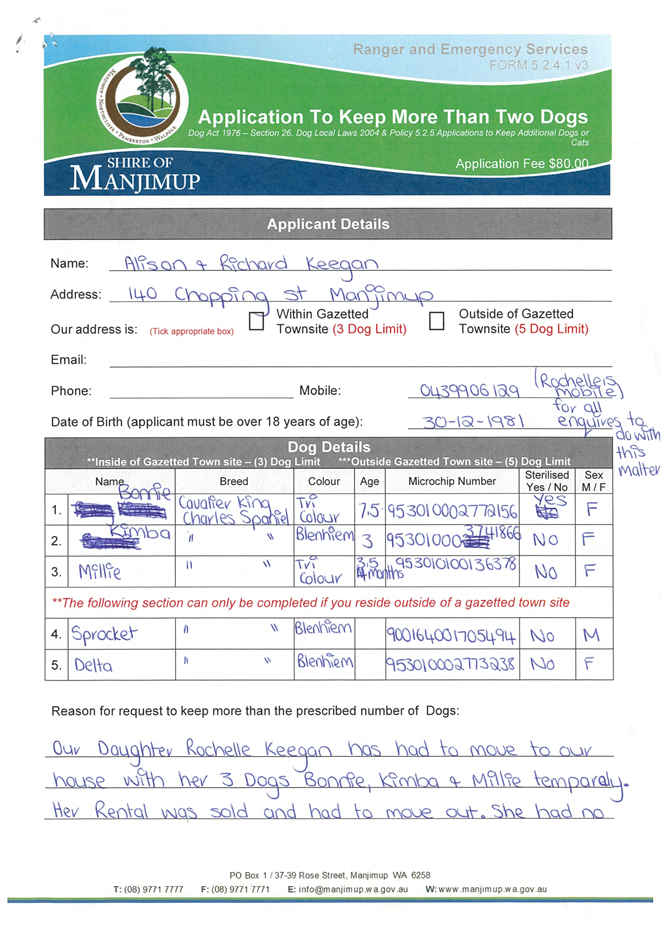 9.7.2 - Application to Keep More Than Two Dogs at 140 (Lot 100) Chopping Street, Manjimup