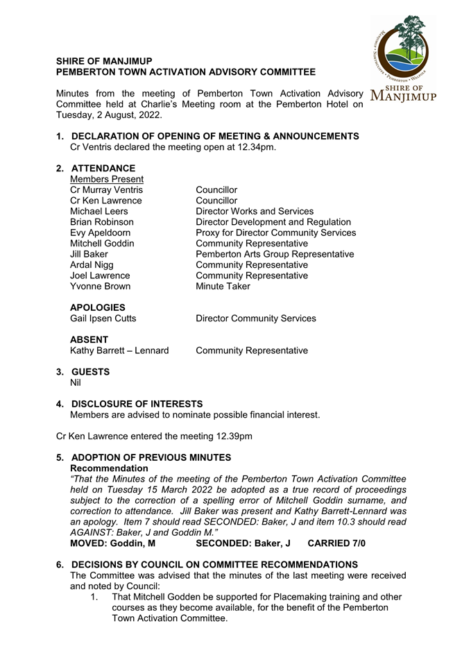 9.16.1 - Unconfirmed Minutes of the Pemberton Town Activation Advisory Committee Meeting Held 2 August 2022